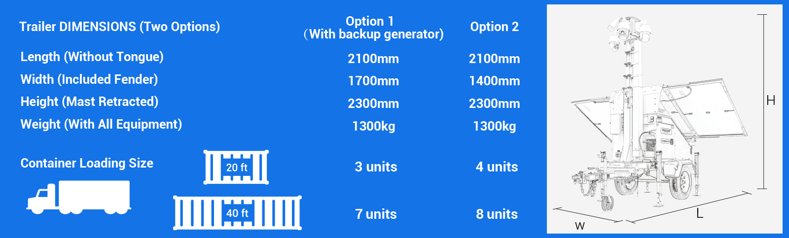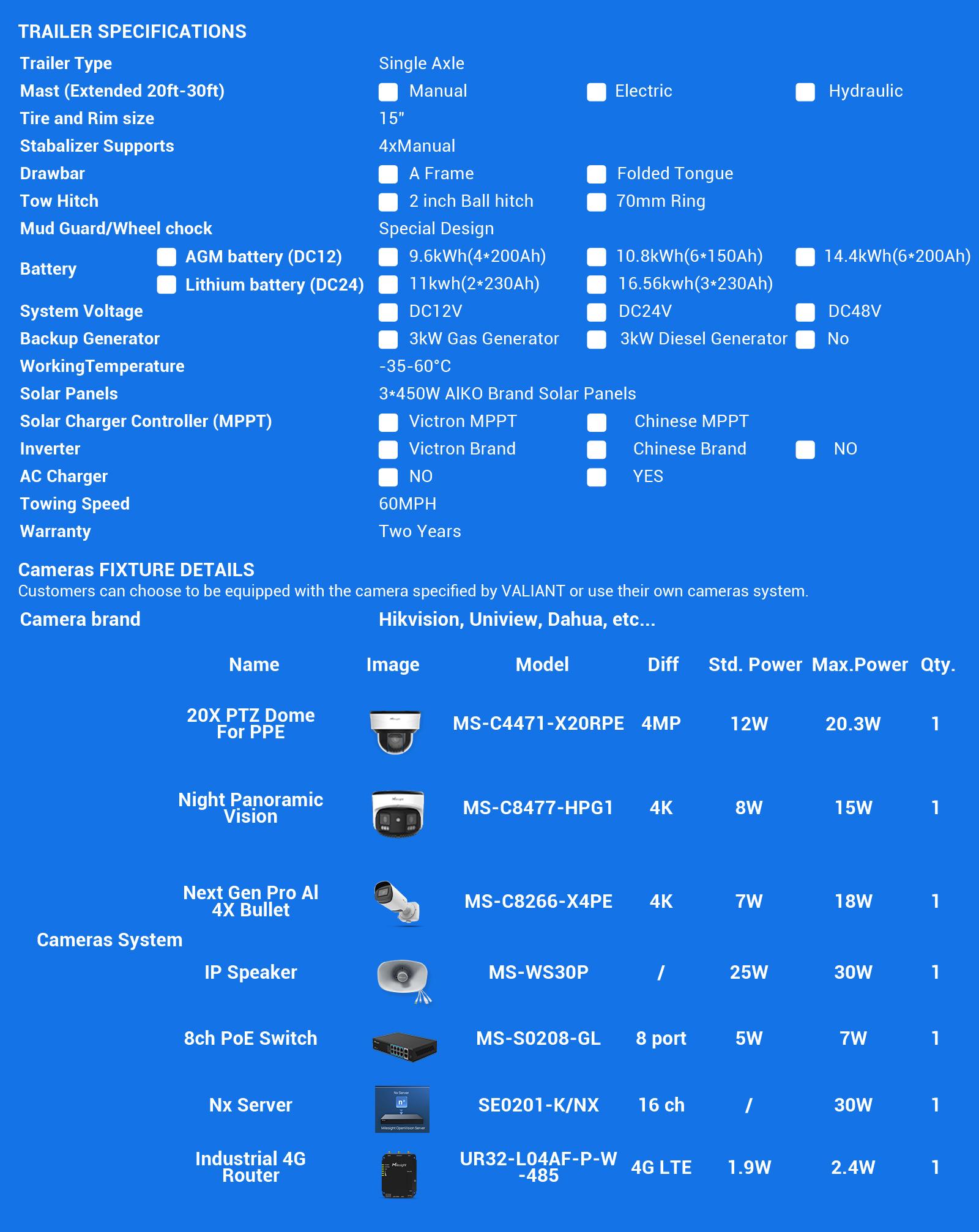 Medium-Small Size Single Axle Solar Surveillance Trailer VTS3P-M